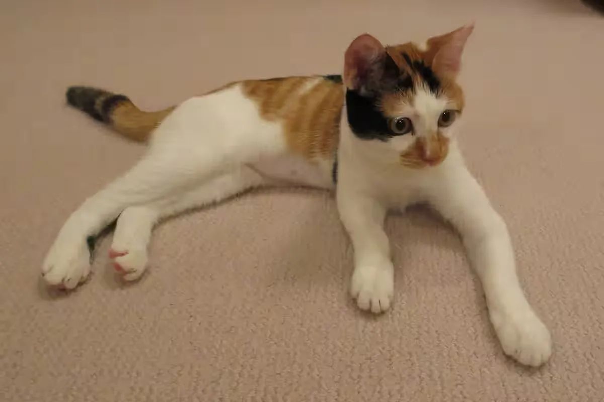 美海は三毛猫の雌。今年8月、生後4カ月半だった美海を、保護団体から動物病院を通じて、ご一家が譲り受けられたという。地球の象徴ともいえる美しい海を願い、ご一家で命名された。