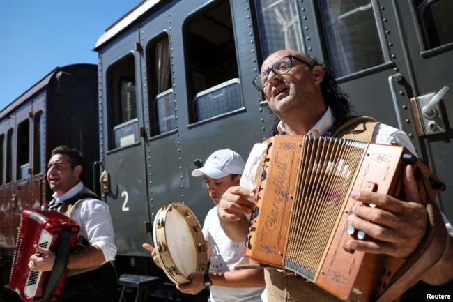 Laura Colaprete, a local guide, said the trains draw Italians and foreigners, families and children, younger people who get off to hike and ride bicycles, and older people "who have time to spare.”