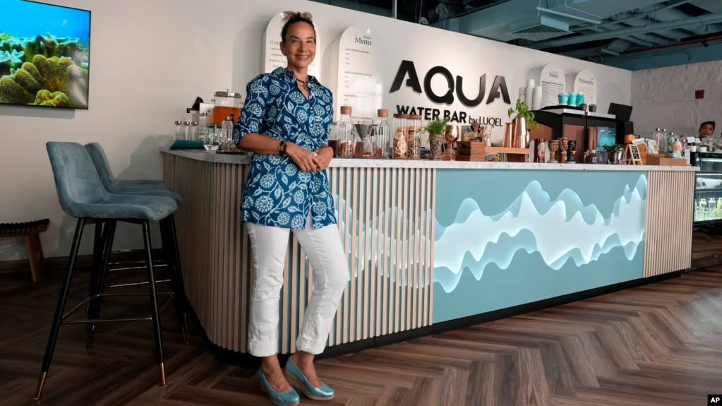 Roia Jabari is a director at Aqua Water. She said experts have designed its water to fit your “needs and mood.” And she added, “We can give you the perfectly mineralized recipe.”