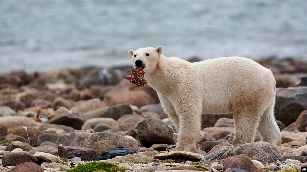 Polar bears try to keep up their weight in the summer after a spring when they eat a lot and gain weight. In the area of the Hudson Bay where researchers studied, lack of sea ice has meant polar bears are on land three weeks longer than in the 1980s, Pagano said.